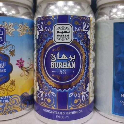 عطر برهان برند نسیم حجم 100 میل مردانه و زنانه رایحه خاوری، برگ سبز، بهار نارنج، مشک، عود